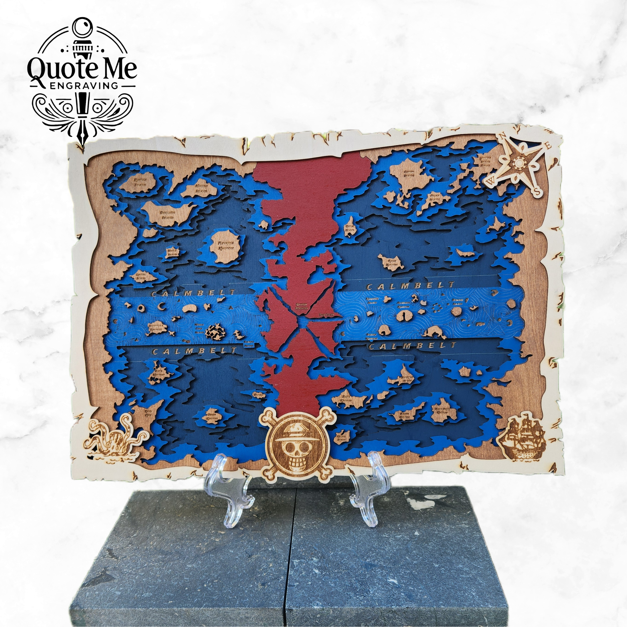 200th Customer to purchase from Quote Me Engraving wins this 5 layered hand made One Piece Map!!! Vauled at $200 Stall E08 *Purchases also includes deposit on orders